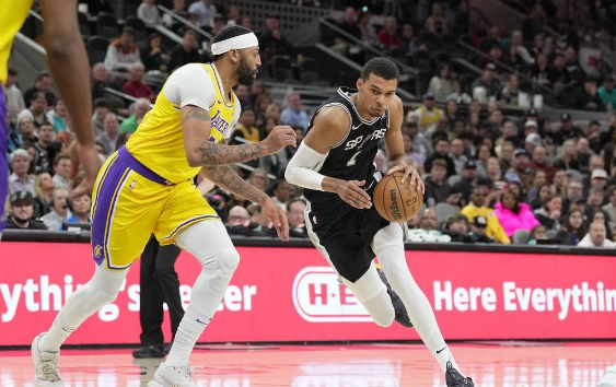 籃球直播吧12月14日訊 NBA常規(guī)賽,客場作戰(zhàn)的洛杉磯湖人以122-119擊敗圣安東尼奧馬刺,馬刺遭遇18連敗。戴維斯37分10籃板1助攻,文班亞馬30分13籃板2助攻。
